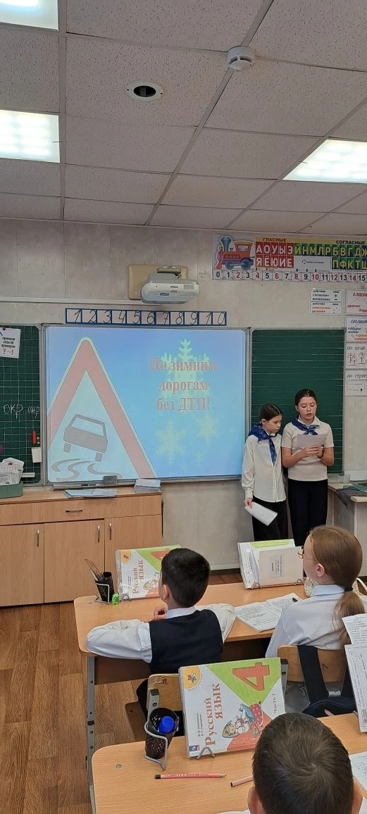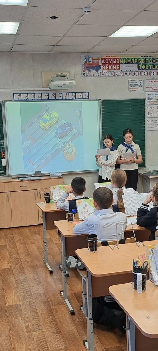 В рамках акции отряд ЮИД "Светофорик" провел профилактические беседы с учащимися начальных классов. Ребята узнали о правилах дорожного движения в зимний период, о том, как безопасно передвигаться по льду, а также о важности ношения яркой одежды и использования световозвращающих элементов.