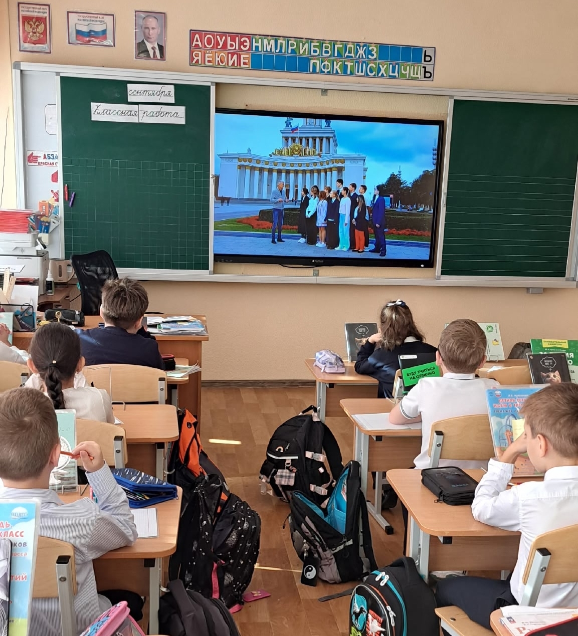Понедельник начался с торжественного момента — церемонии поднятия Государственного флага Российской Федерации! В каждом классе прошли занятия «Разговоры о важном», ребята говорили о творчестве, которое объединяет.
