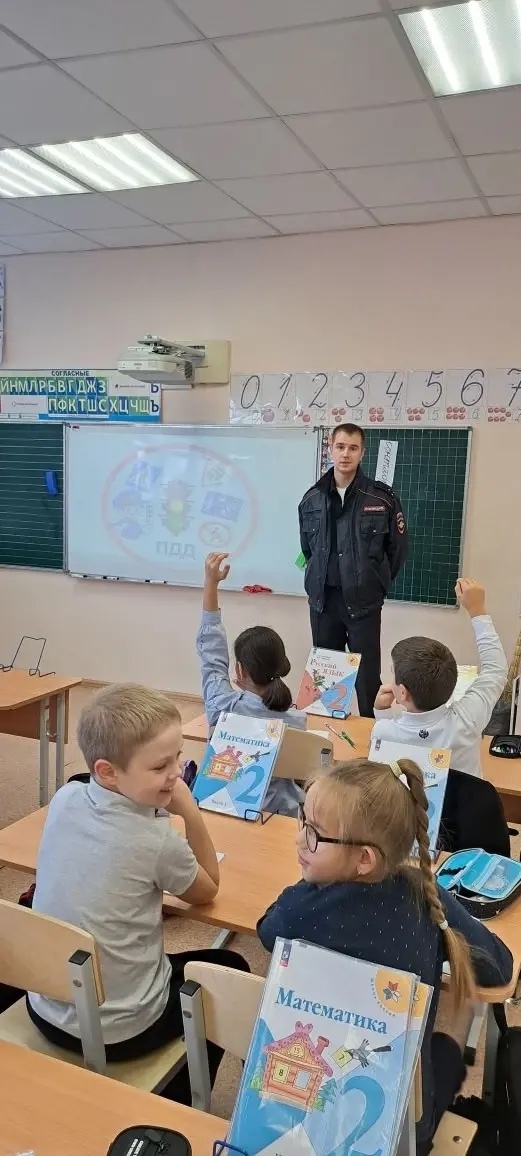 В рамках Всероссийской недели безопасности дорожного движения состоялась встреча учащихся начальных классов с инспектором ГАИ Леоновым Артёмом Алексеевичем. Он напомнил ребятам о правилах безопасного поведения на дорогах и ответил на все интересующие вопросы.