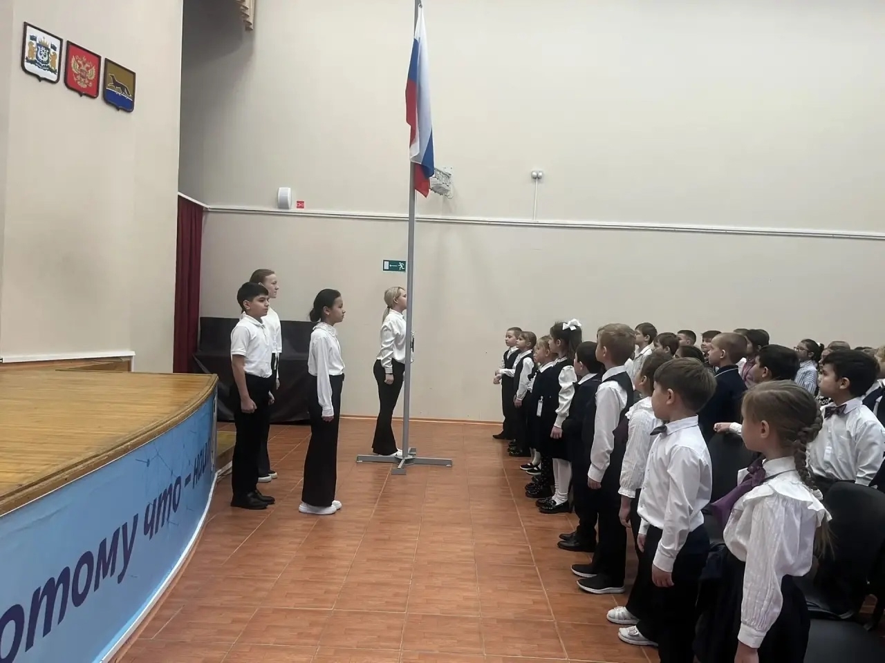 Сегодня на Торжественной церемонии поднятия государственного флага Российской Федерации состоялось очень значимое событие для наших самых юных учеников, Посвящение в первоклассники!