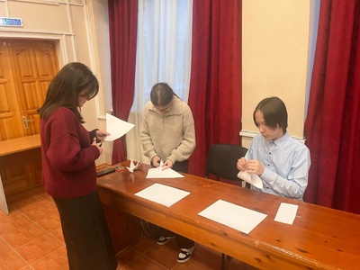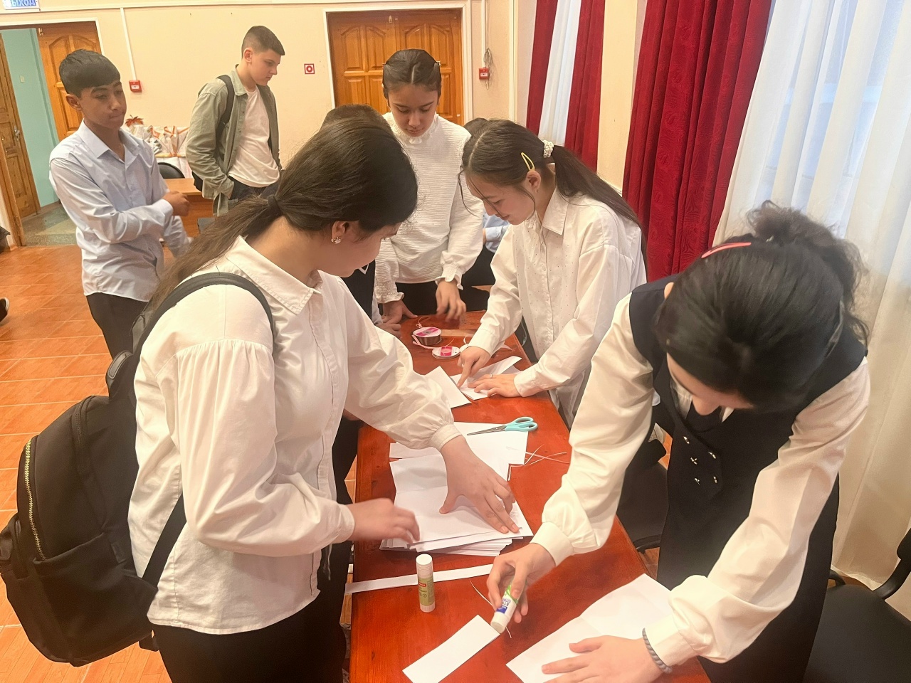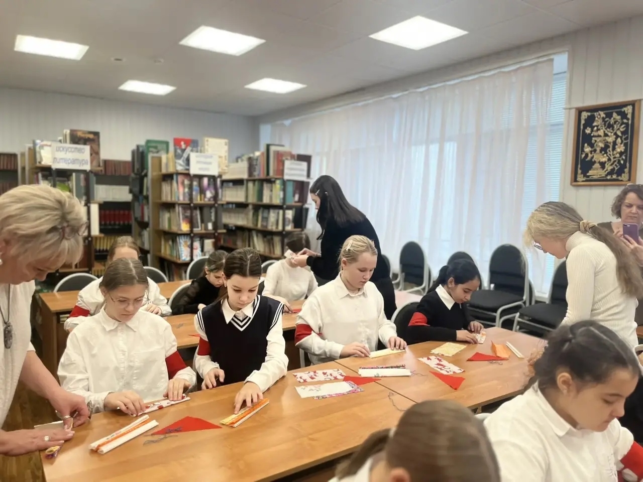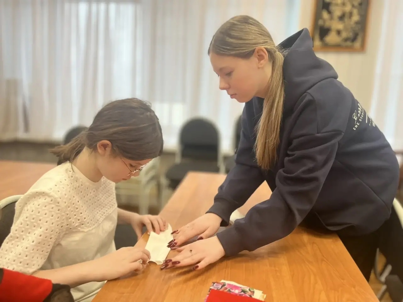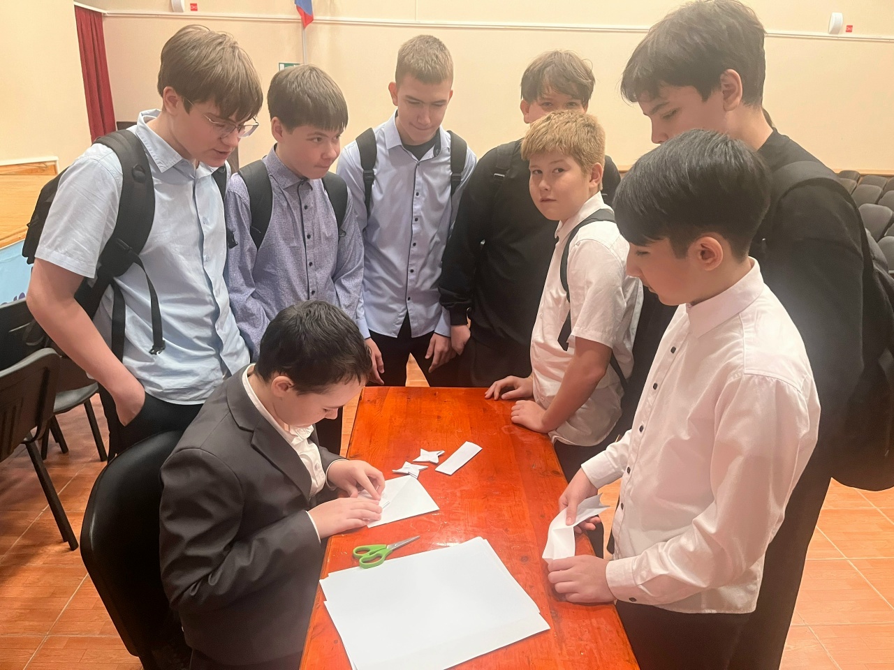 7 классы провели мастер-классы для всех желающих в актовом зале. Ребята показали, как делать подарочную коробку, работали в технике «Оригами», создавая журавлей и звезды.