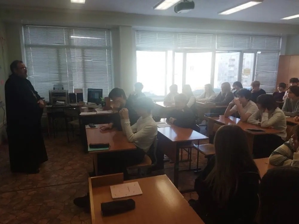 Сегодня, 12 февраля 2026 года, в нашей школе произошло по‑настоящему значимое событие. К нам пришёл протоиерей Николай Гамм, клирик храма в честь Святителя Николая, архиепископа Мир Ликийских, Чудотворца.